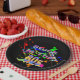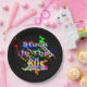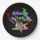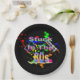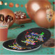 Ensemble de huit plaques de papier de 9 pouces avec une image de plaques de peinture rouge, orange, jaune, vert et bleu, baskets haut-de-gamme en couleurs néon, cassettes, lunettes de soleil colorées et la phrase "Coincé dans les années 80" en lettres néons. Voir la bocal à bonbons, tasse à expresso, flacon, tasse, pichet, verre à balles, théière et dessous de verre. Voir l'ensemble de la collection Tubular 80s Plate dans le FOOD/BEV | Section Plats.