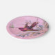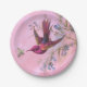 Un colibri rose traverse le parterre fleuri à la recherche d'un petit papillon vert. L'arrière - plan doux et délicat crée une suggestion brumeuse de fleurs et de ciel. Les couleurs du colibri, magenta, rose et rose, ont été modifiées et brillantes pour créer ce style féminin pour la décoration, les accessoires et la correspondance.