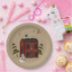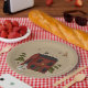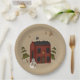 Les plaques en papier de style primitif montrent une maison coloniale rouge traditionnelle avec de la neige sur le toit. Un bonhomme de neige fantaisiste se dresse devant. Des arbres couverts de neige s'élèvent derrière la maison et les étoiles scintillent dans le ciel. Assurez-vous de consulter le magasin pour connaître les autres produits de coordination.