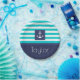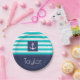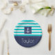 Plaque papier marine avec motif rayé bleu turquoise et marine et texte personnalisable.