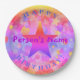Plaques de fête d'anniversaire avec jaune, orange, rose, violet, et d'autres couleurs, étoiles et bulles, le nom de votre enfant et les mots Joyeux anniversaire! Coupes de coordination et serviettes vendues séparément. Conçu par HAMbyWhiteGlove. aka HAMbyWG.