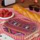 Motif géométrique de style indien indigène avec des tons traditionnels de rose et de conception orange et noire de texture