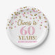 Assiettes En Carton Confetti rose or, 60 ans d'anniversaire