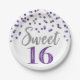 Assiettes En Carton Confetti sucré d'argent mauve 16 Anniversaire