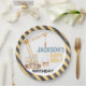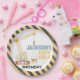 Construction de grue Dirty 3rdy Birthday Plate Construction thème sale 3rdy Anniversaire plaque en papier avec une grue et rayé jaune et noir motif.