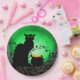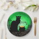 Une silhouette du chat noir de Théophile Steinlen pour le club Le Conversation Noir dans un cadre moderne pour la Saint Patrick avec le chat aux yeux verts, une pleine lune verte, une vigne aux shamrocks et une marmite d'or.