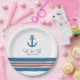 Élégante et classique Plaques en papier Mariage d'Ancres nautiques avec une simple ancre de bateau et un ensemble de rayures en bleu marine foncé et corail. Ces assiettes à thème de plage nautique peuvent être facilement customisées avec vos détails mariages. Pour plus d'options de personnalisation, cliquez sur le bouton Customiser.