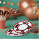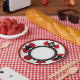 Le design Art Déco, lumineux et propre, avec un thème de jeu de carte sur ces assiettes en papier brillant et robuste est parfait pour la prochaine fois que vous organisez une soirée (ou un après-midi) pour votre groupe de cartes. Doté d'une jante rouge vif, de 4 anneaux noirs croustillants sur un arrière - plan blanc, de 4 groupes de 3 formes se chevauchant représentant les symboles emblématiques de la lecture de costumes de carte (diamant, trèfle, coeur & pique), et dernier mais pas le moindre, un champ de texte personnalisé pour votre monogramme !