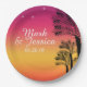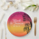 Assiettes En Carton Coucher de soleil tropical sur la plage ombré rose