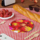 Assiettes En Carton Couleur Abstraite rouge et rose