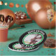 Les plaques de papier sur le thème de l'anniversaire du hockey ne sont que quelques-unes des fournitures nécessaires pour l'anniversaire du hockey lorsque vous planifiez une fête sur le thème du hockey. Ajoutez une photo de votre joueur ou de votre équipe de hockey préféré. Conçu dans le style d'un meuf de hockey avec un thème uniforme de hockey. Choisissez parmi les couleurs de votre équipe, y compris celle-ci en vert, blanc et noir. Parfait pour un enfant qui aime jouer au hockey. C'est génial si vous faites une fête d'anniversaire à une patinoire de hockey. Poursuivez la fête d'anniversaire sur le thème du hockey avec les faveurs de la fête, les assiettes de hockey, les serviettes et la nappe.