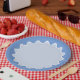Doté d'un design de bordure ondulée rétro amusant dans des tons modernes et frais de bleu.