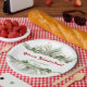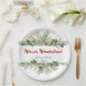 Assiette en papier de salutation de vacances encadrée rouge et verte avec des branches de pin de sapin de Noël, des cônes, des baies et une phrase personnalisable "Joyeux Noël" vous pouvez changer en "Bonne année" ou "Joyeuses Fêtes" et autres. Plus de produits en vedette que vous pouvez trouver dans ma boutique Zazzle PatterndigitPics ou m'écrire un e-mail à t.dyomushkina@gmail.com, si vous avez besoin d'un design spécial.