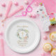 Avec une délicate couronne florale à l'aquarelle, cette assiette en papier chic pour la première communion peut être personnalisée avec les détails de votre événement spécial. Conçue par Thisisnotme©