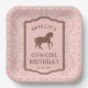 Cette plaque d'anniversaire de cowgirl est ornée d'une bordure en corde avec un étiquette personnalisé. Au centre du étiquette se trouve un cheval avec les mots "Cowgirl anniversaire". L'arrière - plan est un motif de bandana rose. Vous pouvez personnaliser avec un nom et une date. La façon idéale de déguster votre table pour votre soirée cowgirl. YeeHaw !