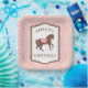 Cette plaque d'anniversaire de cowgirl est ornée d'une bordure en corde avec un étiquette personnalisé. Au centre du étiquette se trouve un cheval avec les mots "8ème anniversaire". L'arrière - plan est un motif de bandana rose. Vous pouvez personnaliser avec un nom et une date. La façon idéale de déguster votre table pour votre soirée cowgirl. YeeHaw !