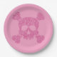 Ces assiettes de fête sont décorées dans un style gothique glamour. Une image d'un crâne et d'os croisés est imprimée au centre dans une parties scintillant rose sur un arrière - plan rose.
