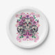 Assiettes En Carton Crâne floral, squelette aquarelle rose, Halloween.