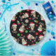 Crânes orientés de sucre de Noël avec des casquettes de Père Noël, des yeux de menthe poivrée et des os croisés de sucre de canne. Cette conception a un arrière - plan noir et les crânes sont entourés par des sucreries de Noël.