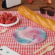 Assiettes En Carton Cravate-teinture rose et bleu Peinture d'aquarelle