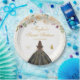 Cette plaque de sweet sixteen élégante et glamour présente une belle princesse aux cheveux brunes et à la peau claire dans une robe de boule noire. Le texte combine écriture manuscrite et polices sans serif modernes pour un look élégant et sophistiqué. Les compositions florales, les papillons et les confettis d'or créent un mélange parfait de rustique et de chic. Graphiques par www.etsy.com/uk/shop/SunflowerDayLove