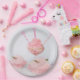 Crème glacée rose et plaques à papier jetables de partie d'enfants de petits gâteaux.