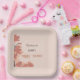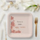 Il présente un design Folk Art à ressort fleuri dans un saumon foncé, crème et marron. Ces assiettes correspondent à l'invitation de douche du même design.