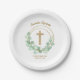 Une croix de parties scintillant en faux or et une couronne feuille d'eucalyptus mettent en surbrillance ces plaques de papier avec votre texte en lettres chic. Parfait pour le baptême, le baptême ou la première communion de votre enfant. Objets CORRESPONDANTS disponibles dans notre magasin.