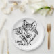 Ensemble de huit plaques de papier de 9 po avec l'image d'un croquis d'un loup solitaire (Canis lupus) et texte facultatif sur blanc. Voir la tasse correspondante et le dessous de verre rond en grès. Consultez la collection complète de la Nature & Wildlife Plate dans la section HOME.