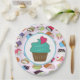 Ensemble de huit plaques en papier de 9 pouces avec une image de cupcakes fantaisistes sur rose derrière un centre blanc avec une bordure turquoise et une image d'un cupcake au chocolat avec glace turquoise surmonté d'un coeur rouge. Voir la bocal à bonbons, tasse à expresso, lanceur, théière et dessous de verre correspondants. Voir l'ensemble de la collection Kids' Corner Plate dans le FOOD/BEV | Section Plats.