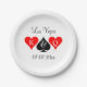 Plats de mariage à thème du casino de Las Vegas personnalisés. Plaques en papier jetables avec nom personnalisé monogramme de mariée et mariée ou couple marié. Jouer carte convient à la conception de poker avec reine et roi des coeurs plus pique. Mignonne jeter les fournitures de fête pour destination mariage, anniversaire, fiançailles, douche nuptiale, bachelorette, lune de miel etc. Couleurs rouges blanches et noires. Design monogramme.