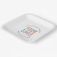 Promote your brand with durable square paper plates printed with your company logo. You can easily personalize these white plates online to match any event or promotion. FDA-compliant, these plates are printed in the USA and sold in small order quantities. The size options are 9 x 9 inches and 7 x 7 inches. No setup fee.