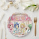 Pretty pink and green anime girl's birthday ice cream party personalized paper plates! Adorable girls sitting around a table eating ice and pretty pastel colors.