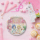 Pretty pink and green anime girl's birthday ice cream party personalized paper plates! Adorable girls sitting around a table eating ice and pretty pastel colors.