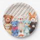 Blue, yellow and brown boy's baby shower paper plates with cute crocheted bears and bunnies.