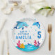 Cute Dolphin Sea Animals Birthday Party Paper Plates. Cute smiling dolphins in cartoon style. Add your photo and customize the text on the plates. Fun and cute birthday plate for a girl or a boy celebration.