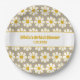 Assiettes En Carton Cute Floral Daisy Motif moutarde blanc gris