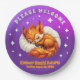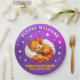 Celebrate the arrival of your little lady with these paper plates, which feature an illustration-style image of an adorable young fox cub with golden, flame-like fur, dreaming happily in the starry night skies. Customize with baby's name, date of birth (or event date), and even the background color.