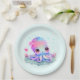 Plaques en papier avec l'image d'une pieuvre girly mignonne avec une fleur sur la tête. De grands yeux brillants et un visage amical.