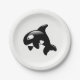 Caricature adorable chubby Orca baleine avec un petit coeur blanc près de sa queue.