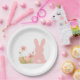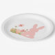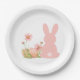 Assiettes En Carton Cute Pink Easter Bunny with Spring Flowers
