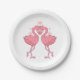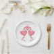 Add a splash of flamingo joy to your celebration! This vibrant design features a cute flamingo couple sharing a kiss beneath floating hearts, with bold pink feathers and soft pink typography on a crisp white background. It’s perfect for a tropical wedding, beach ceremony, or Hawaiian luau, and adds playful elegance to your table setting. Whether you're hosting an engagement party, rehearsal dinner, or the big day itself, these plates bring romance, personality, and tropical flair to every bite. A stylish way to make your event feel joyful and unforgettable.
