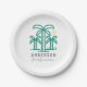 Commémorez votre famille ou votre réunion avec ces plaques de papier pique-nique personnalisées uniques. Cet hôtel design est doté de palmiers turquoises et d'un soleil jaune, idéal pour une excursion sur le thème de la plage. Personnalisez avec votre nom de famille et l'année de la réunion de famille. Joyeux plaisir au soleil ! La couleur arrière - plan peut être changée pour correspondre à vos chemises ou à n'importe quelle couleur.