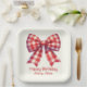 These cute paper party plates feature a large red and cream gingham plaid bow. Personalize with your choice of special text. Great for any occasion.
