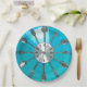 Il est temps de manger. Un visage d'horloge bleu et aqua fait à partir de cuillères et fourches. C'est génial pour une assiette géniale ! Voyez que c'est une image de soeur rouge et rose 'Cutlery O'clock 2.'