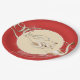 Plaque de papier de fête illustrée dans une couleur rouge épicé et champagne avec un design d'impression de cygnes d'amour. Customiser cette assiette ou acheter tel quel. Nous offrons également des serviettes en papier de coordination et un livre d'or sur notre boutique.