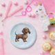 Plaques en papier avec un chien Dachshund et un arrière - plan bleu. Ces assiettes en papier sont parfaites pour les soirées et événements à thème pour chien ou pour toute personne qui aime juste Dachshunds.