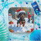 Un Dachshund ludique traverse la scène hivernale enneigée, portant un casquette de Noël rouge festif. Ce design charmant met en valeur le long corps, les jambes courtes et la personnalité spirituelle de la race tout en captant la chaleur et la joie de la saison des fêtes. Un délicieux moment d'hiver plein de joie festive.