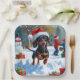 Assiettes En Carton Dachshund Courir en neige avec Casquette de Noël