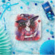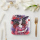 Cette plaque en papier est ornée d'une sorcière fantaisie portant des marguerites roses rouges à l'aquarelle.